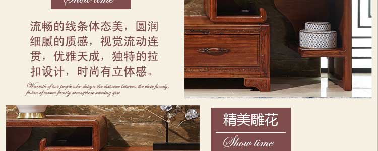秉承灵感无限的美学创意思想,将艺术和传统文化融入家具设计,每一个细节都表现出家具的品味和自我的风格,折射出家具的实木文化和强烈个性,雕刻曲线栩栩如生,图案惟妙惟肖。朴实简洁不华丽,没有繁多琐碎的花式设计,打造一个时尚完美的家。