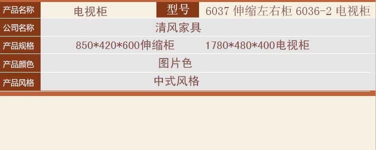 清风家具 实木电视柜 新中式风格 伸缩柜 地柜 6037伸缩左右柜 6036-2电视柜