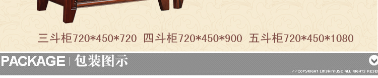 外围尺寸(长*宽*高): 6073三斗柜720*450*720 6074四斗柜720*450*900 6075五斗柜720*450*1080