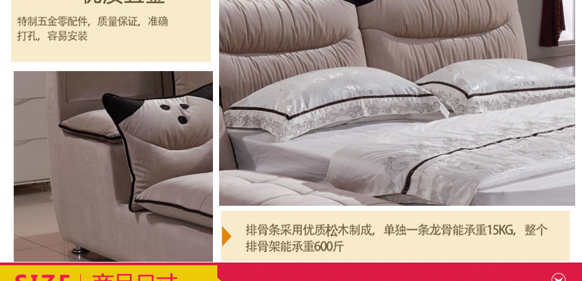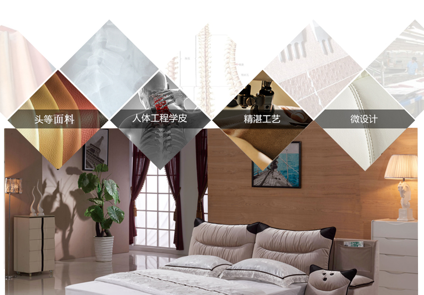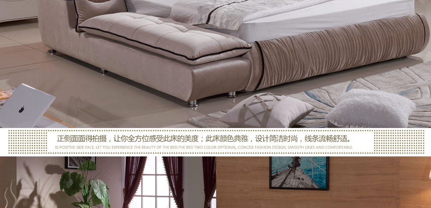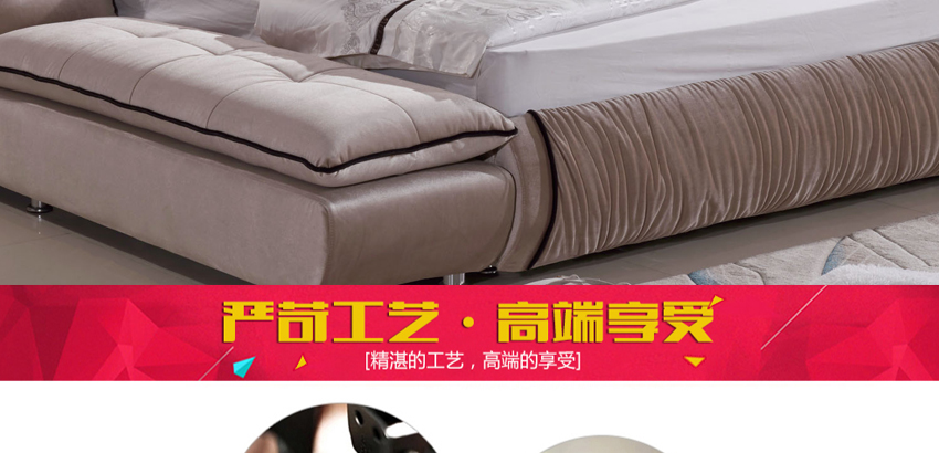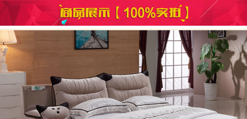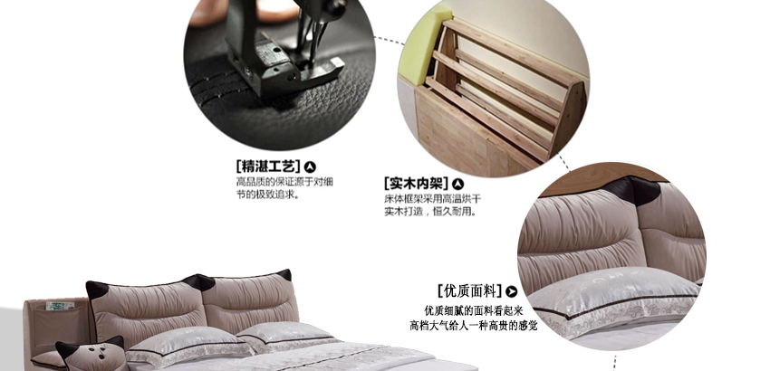 奥琼品牌布艺系列布艺床 卧室高品质现代舒适布艺床双人床2810