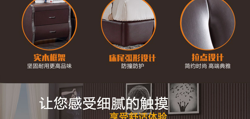 第一次在淘宝上没这么高大上的家具,本来是很担心的,没想到拿到手那么好,床很舒服,没什么气味,搬进新家很有格调。买皮床就选这家吧,价格实惠,重要的是质量好。