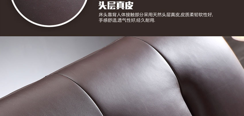 采用实木框架,变形率低,经久耐用。皮料为头层牛皮,柔软舒适,透气性、延展性好。设计简约现代,是您满意的选择!