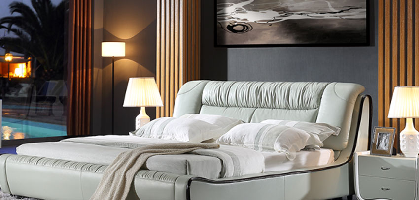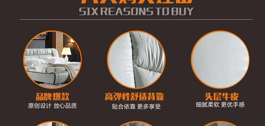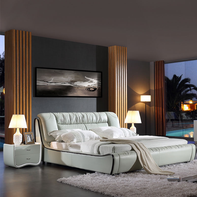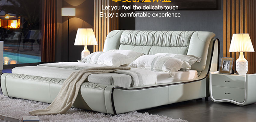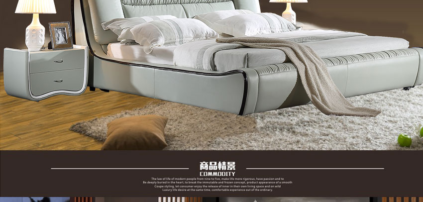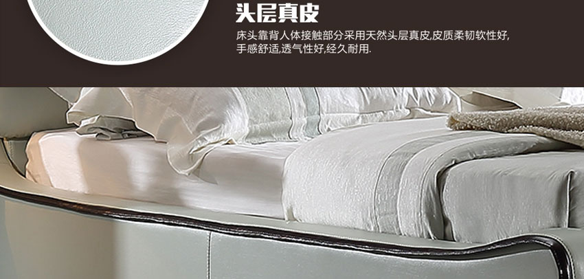 库斯现代简约真皮床 牛皮皮艺床 双人实木床 头层牛皮软床结婚床KS2330