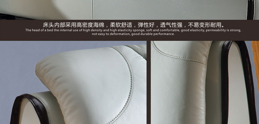 采用实木框架,变形率低,经久耐用。皮料为头层牛皮,柔软舒适,透气性、延展性好。设计简约现代,是您满意的选择!