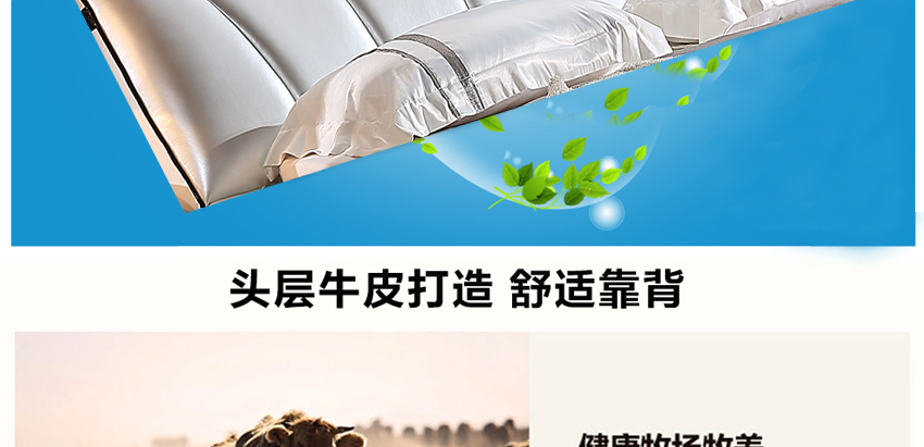 采用实木框架,变形率低,经久耐用。皮料为头层牛皮,柔软舒适,透气性、延展性好。设计简约现代,是您满意的选择!