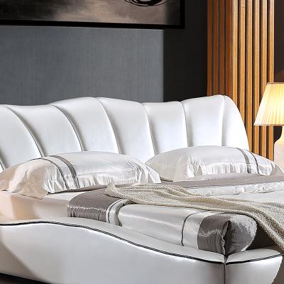库斯真皮床简约现代双人床正品牌实木软床 现代皮艺实木床KS2212