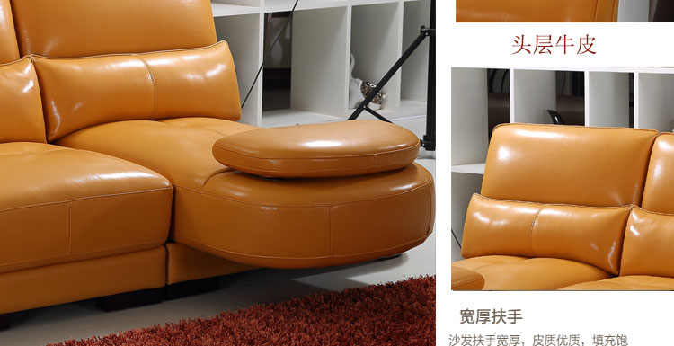 纬图 现代贵妃组合头层牛皮真皮沙发客厅高档沙发转角皮艺沙发套装 3359