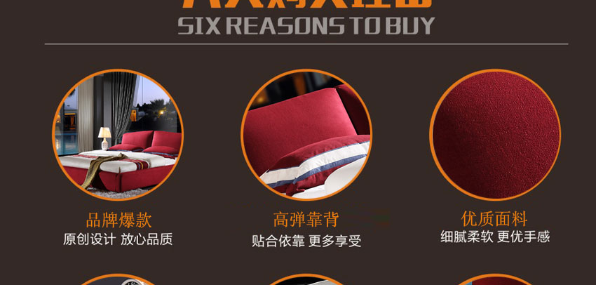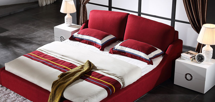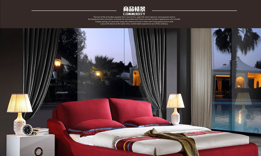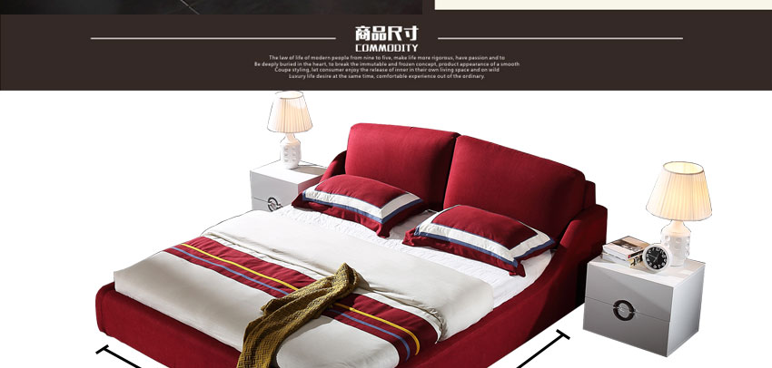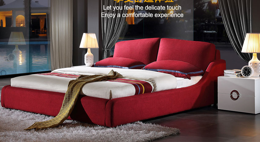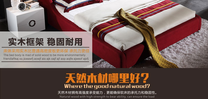 库斯简约时尚婚床布床床1.8米双人床小户型可拆洗实木床KS3025