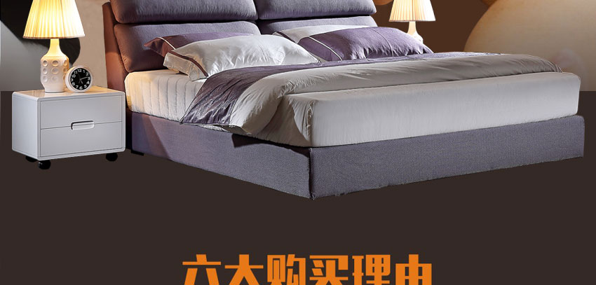 库斯布艺床 床布艺软床 可拆洗布艺实木床 双人床1.58米床婚床软床KS3026