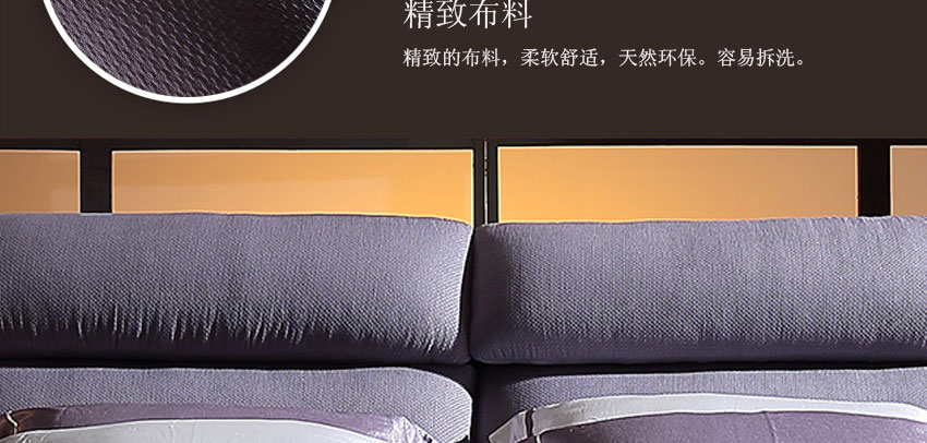 采用实木框架,变形率低,经久耐用。面料柔软舒适,透气性、延展性好。设计简约现代,是您满意的选择!