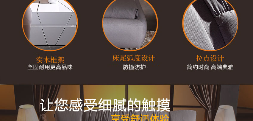 采用实木框架,变形率低,经久耐用。面料柔软舒适,透气性、延展性好。设计简约现代,是您满意的选择!