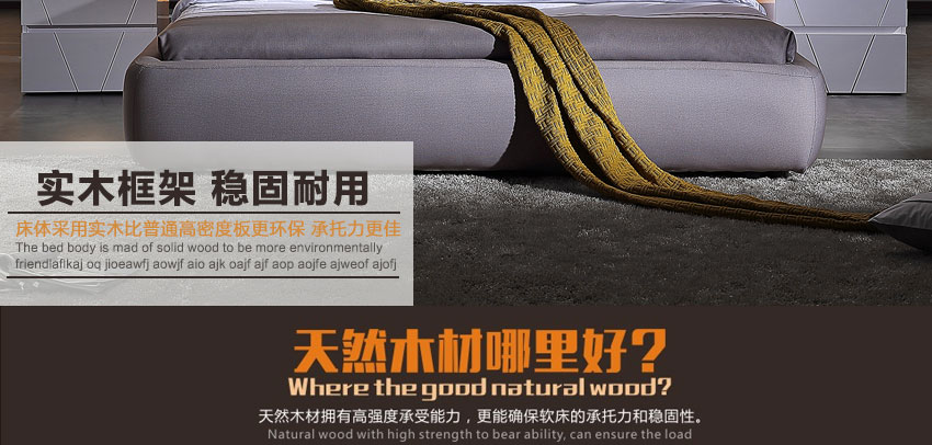 库斯实木床简约现代布艺双人1.8米木质木头木制床布艺床KS3029