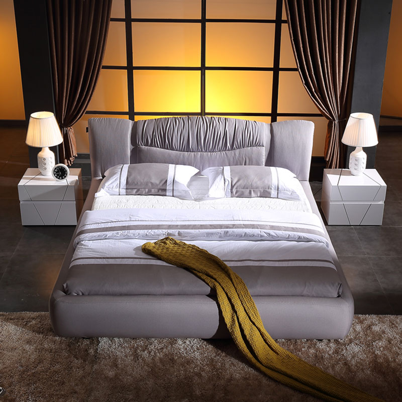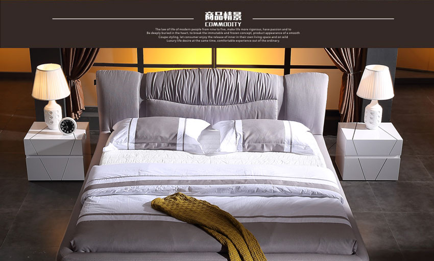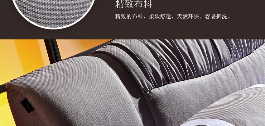 简约大方的一款布艺床,已经装好了,跟整个卧室的风格搭配的很好。很柔和的感觉,是我喜欢的款式。