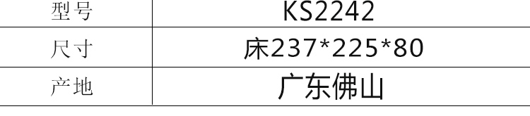外围尺寸:布套床KS2242:237*225*80;床品C2242棉笠四件套。