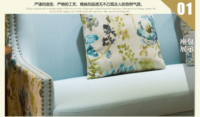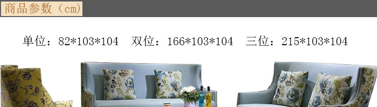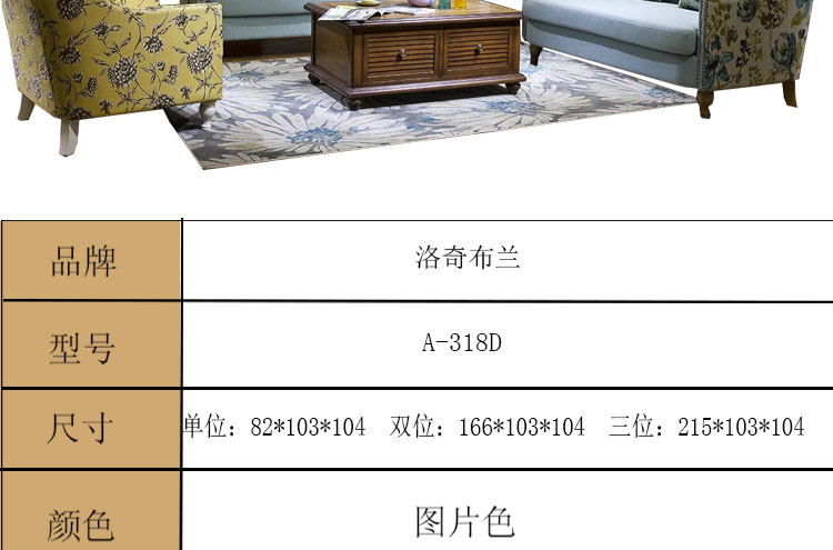 洛奇布兰 美式布艺沙发小户型单人三人沙发组合客厅沙发A318