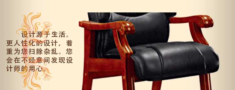 钜晟 四脚实木会议椅真皮办公椅牛皮椅子实木椅子HX-3007