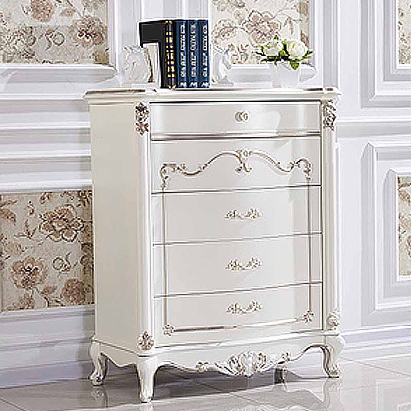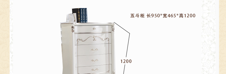 美林印象 欧式五斗柜橱简约白色烤漆实木颗粒5抽屉储存柜 f505