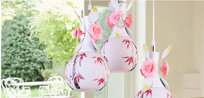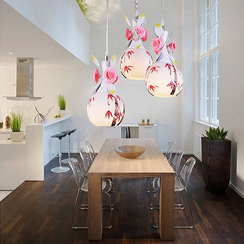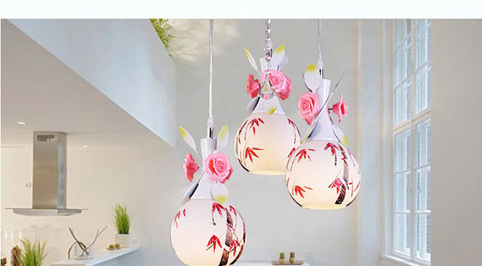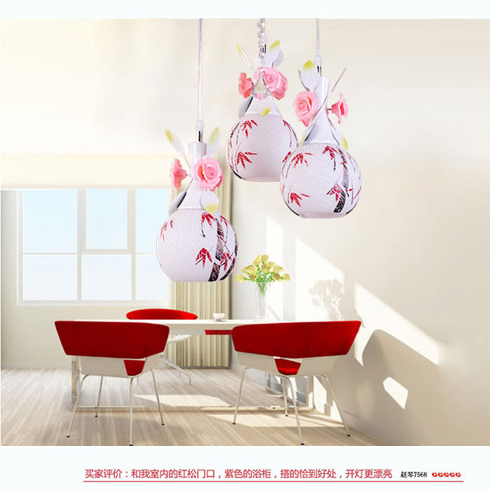 泊图现代浪漫田园灯时尚居家led餐吊灯饭厅玻璃吊灯三头吧台灯饰BA305包邮
