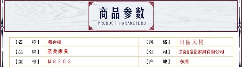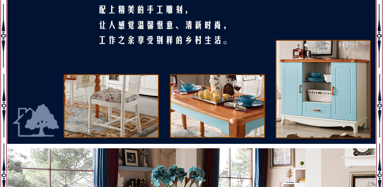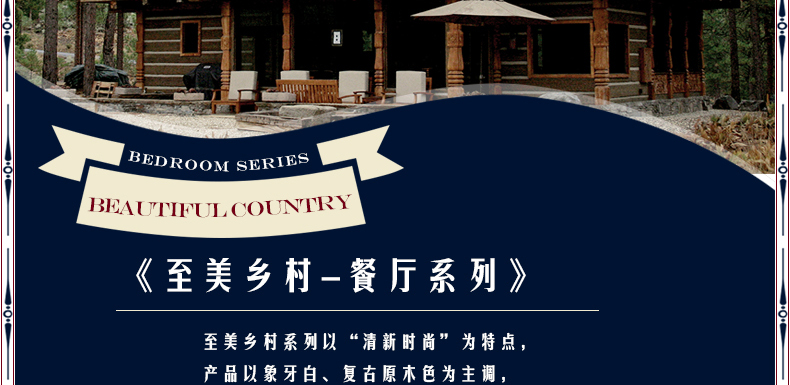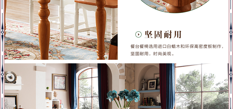 至美乡村系列田园风格实木家庭长餐台餐厅实用餐台餐椅M8203