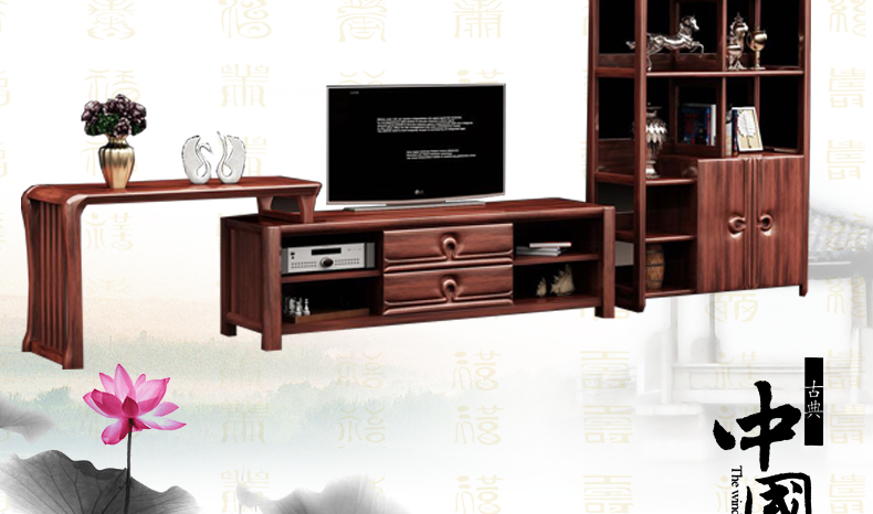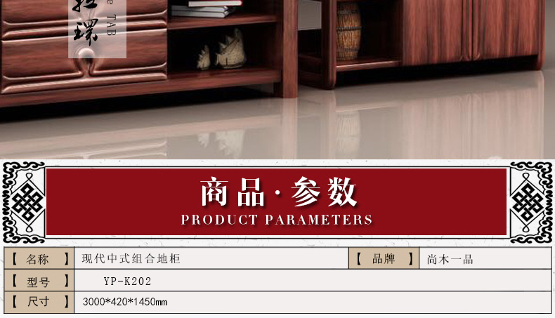 尚木一品电视柜简约客厅茶几组合家具中式胡桃色地柜YP-K202