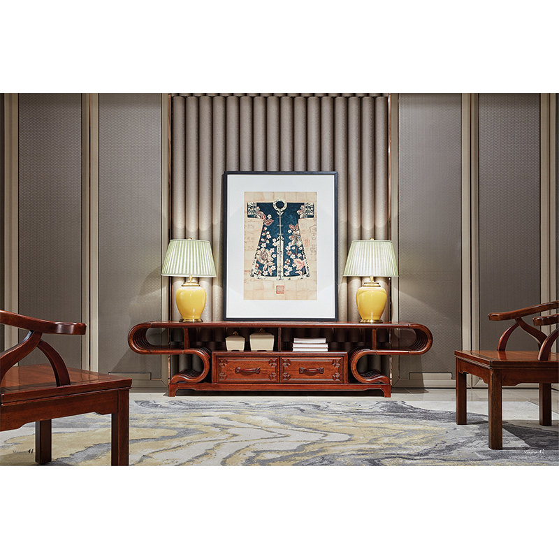 铭悦 高档新中式实木电视柜组合鸡翅木电视柜影视柜地柜纯实木电视柜