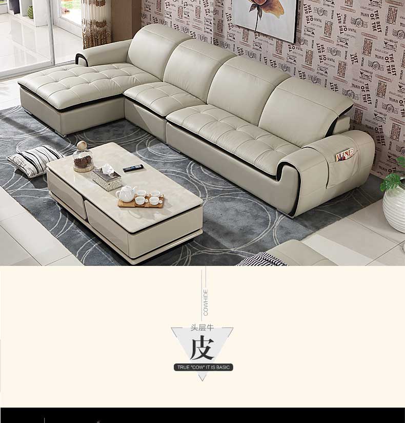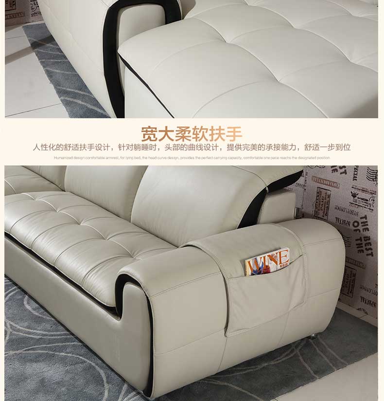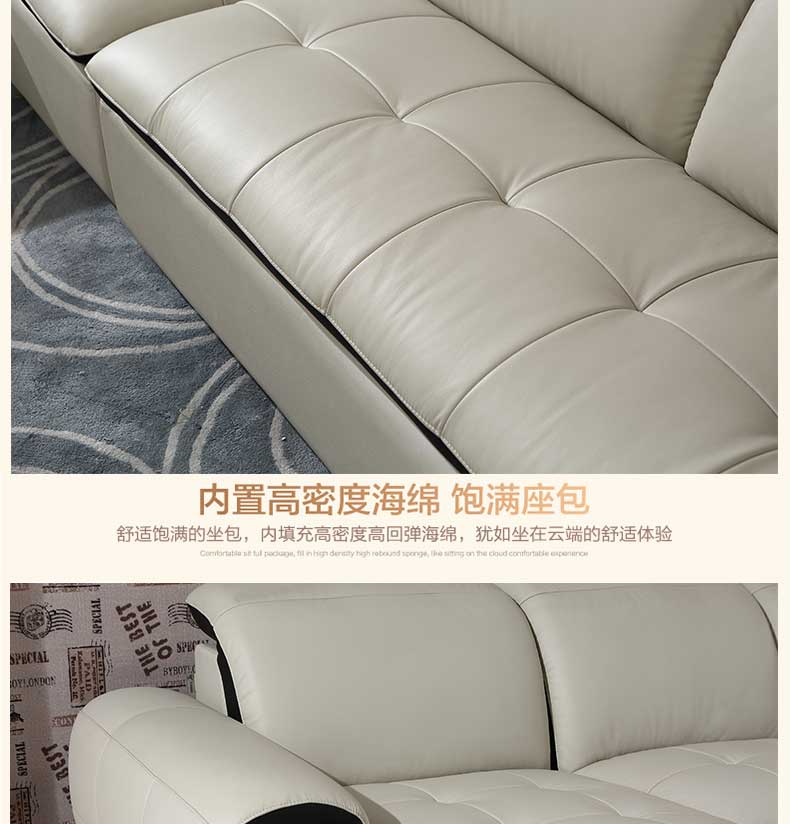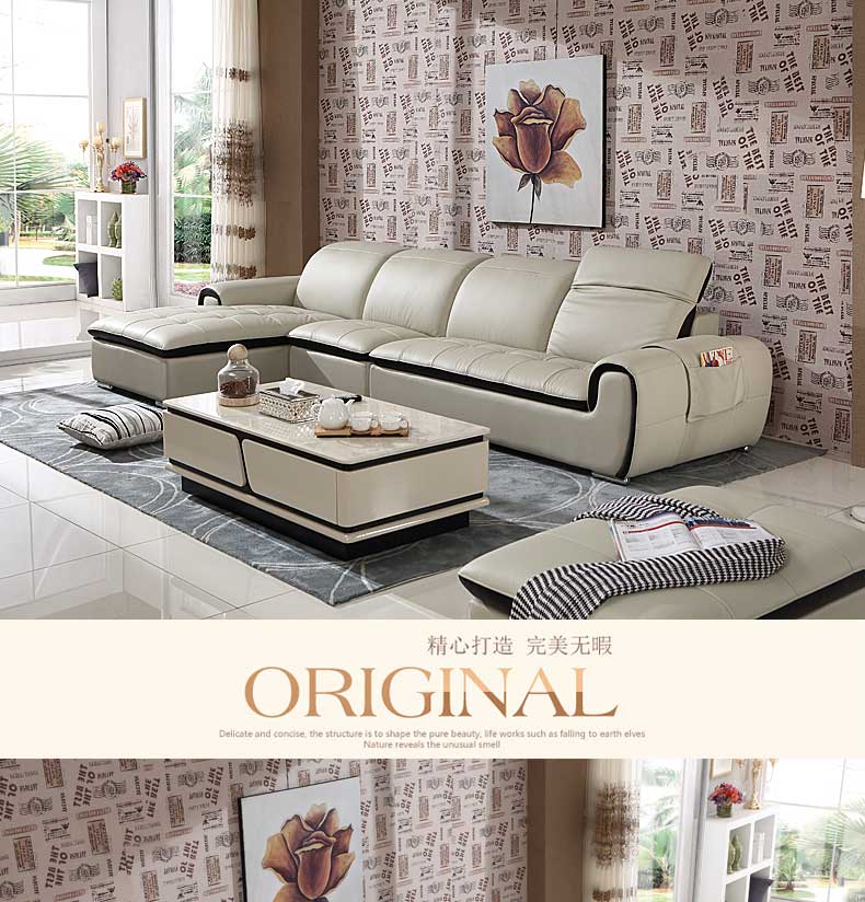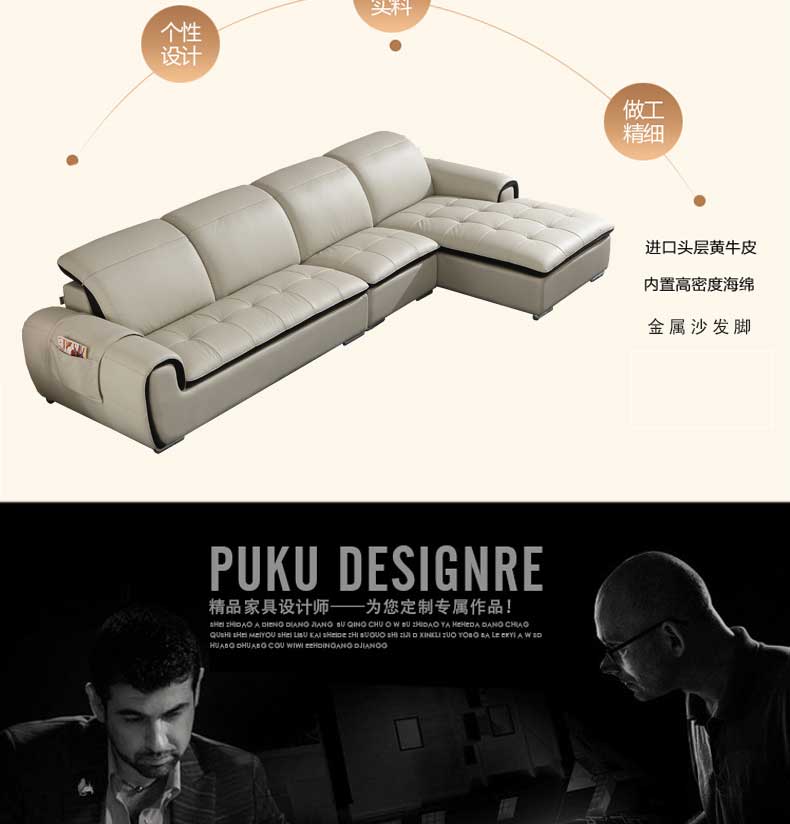 艾格妮斯 贵妃位沙发组合L型沙发组合进口黄牛皮皮艺沙发家居6626沙发