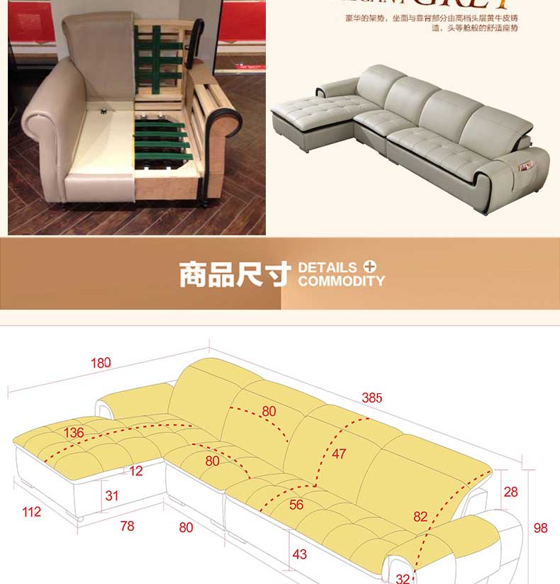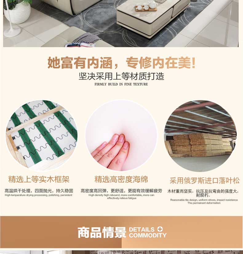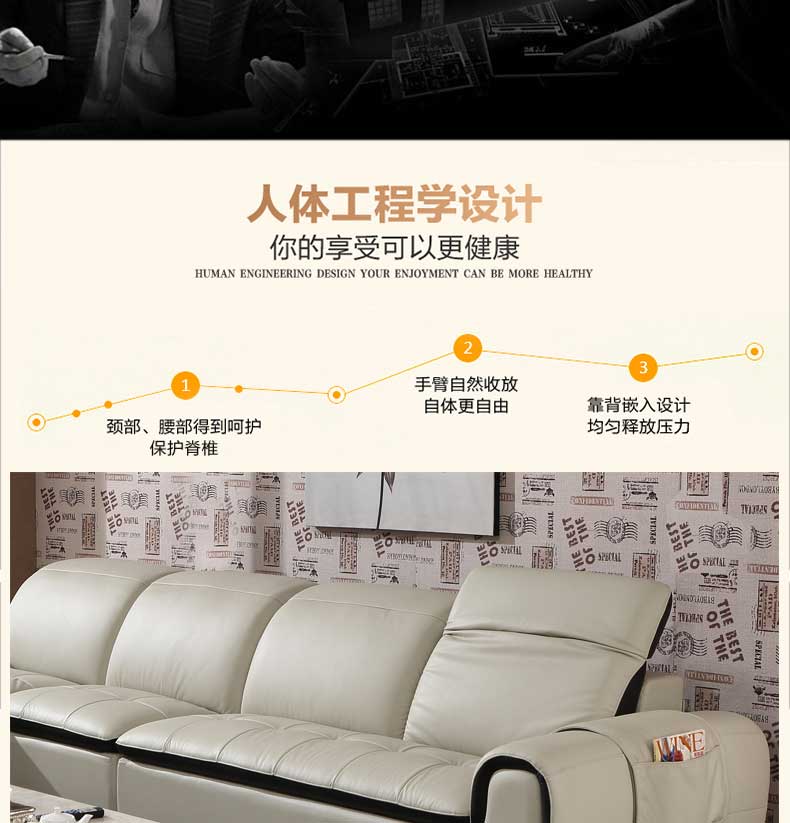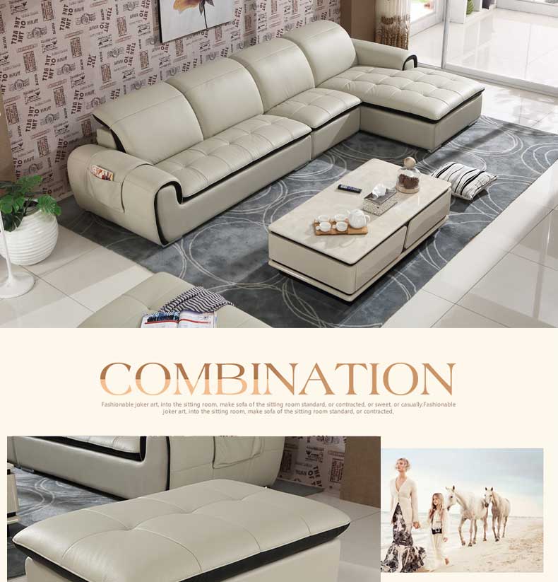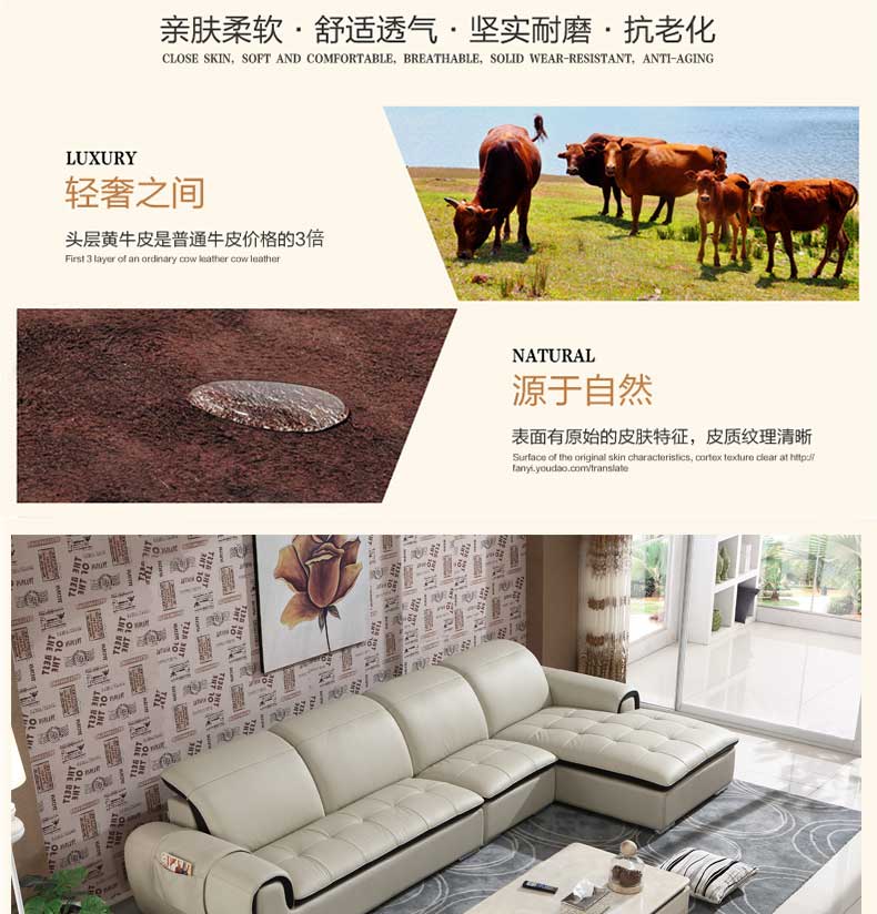 艾格妮斯 贵妃位沙发组合L型沙发组合进口黄牛皮皮艺沙发家居6626沙发