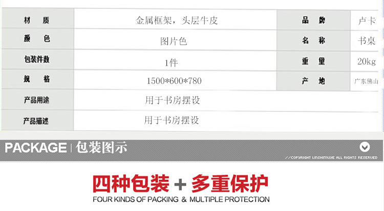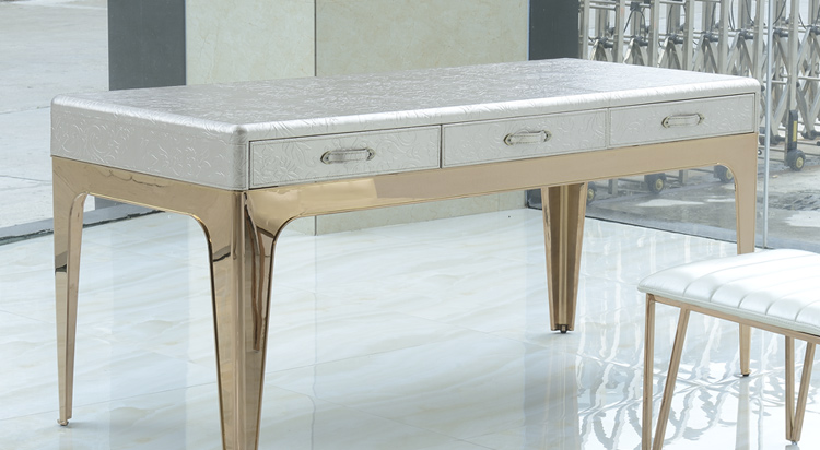 卢卡家具现代不锈钢皮艺铆钉写字桌书房现代风格奢华书桌CTT708