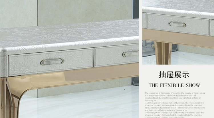 采用金属框架,经久耐用,表面材质多样可选,简约现代设计,奢华大气