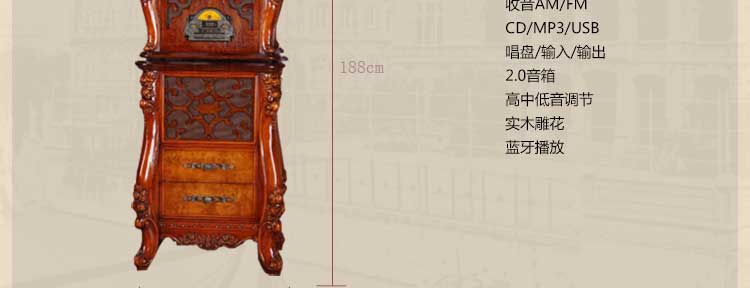 功能:收音FM CD/MP3/USB 唱盘/输入/输出 蓝牙播放