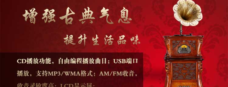 豪饰 仿古大喇叭电唱机 古典留声机 复古唱片机 USB音响 JS-68