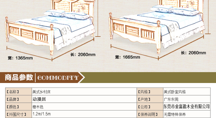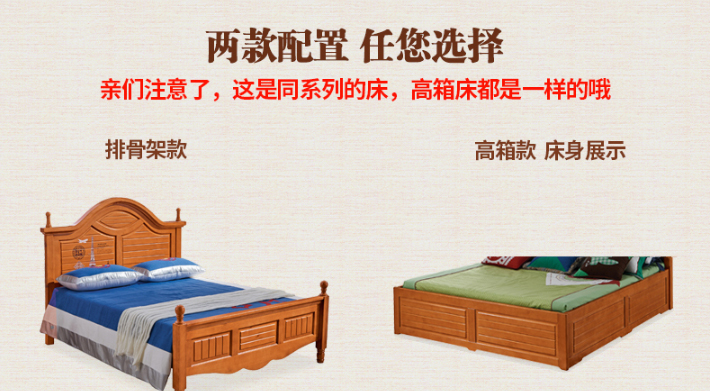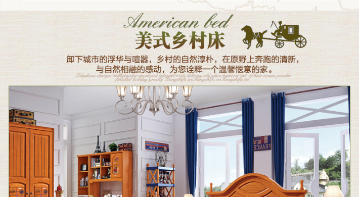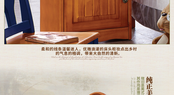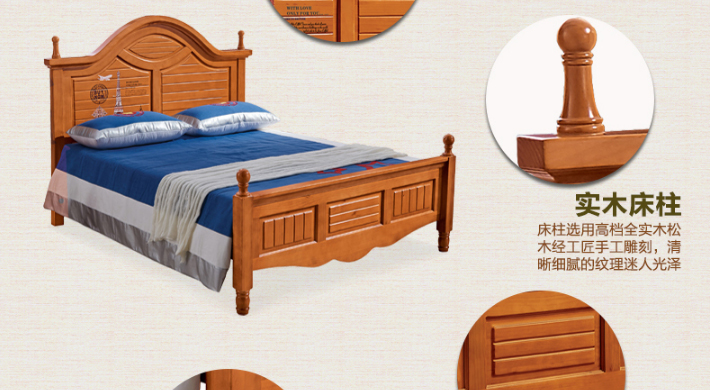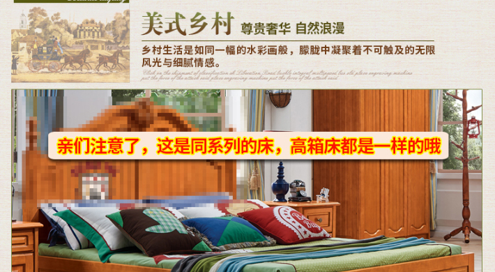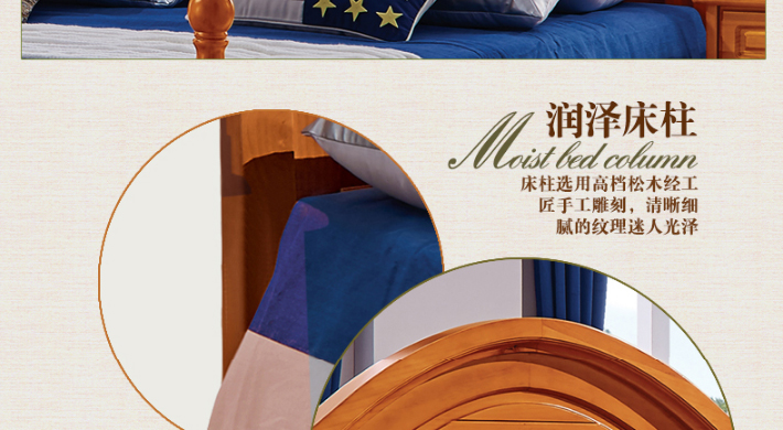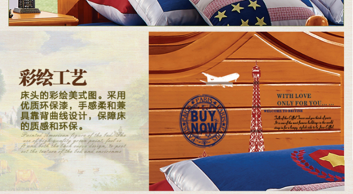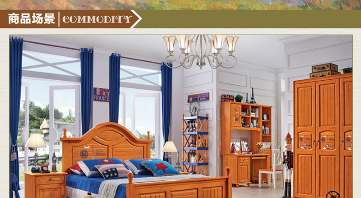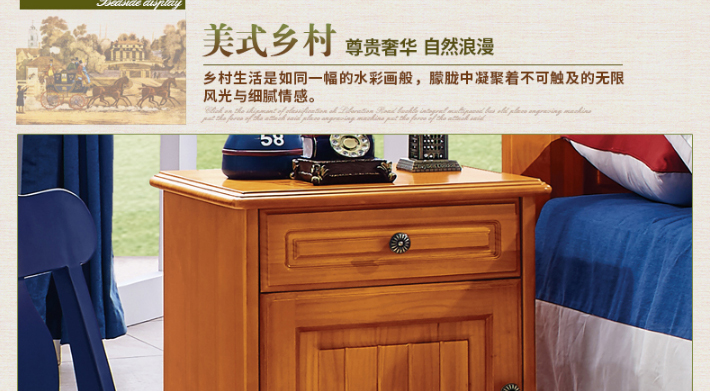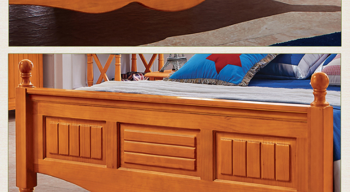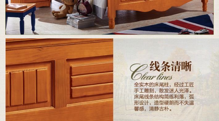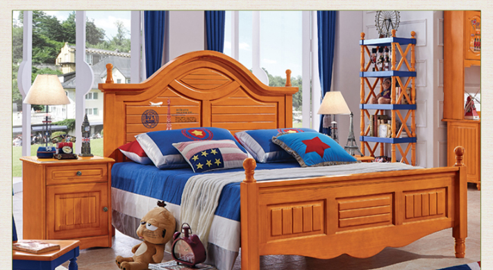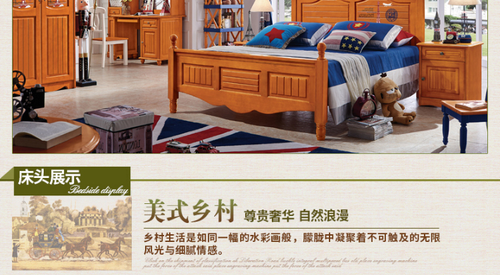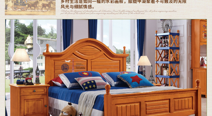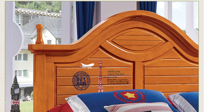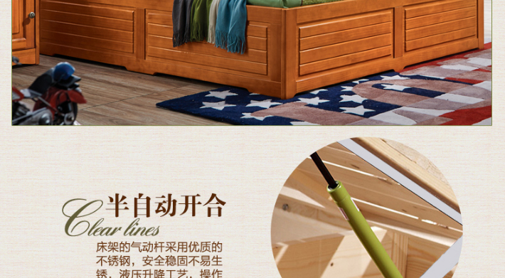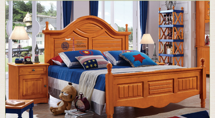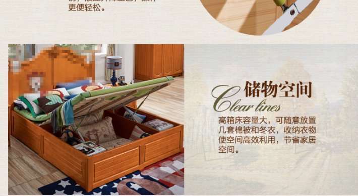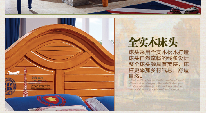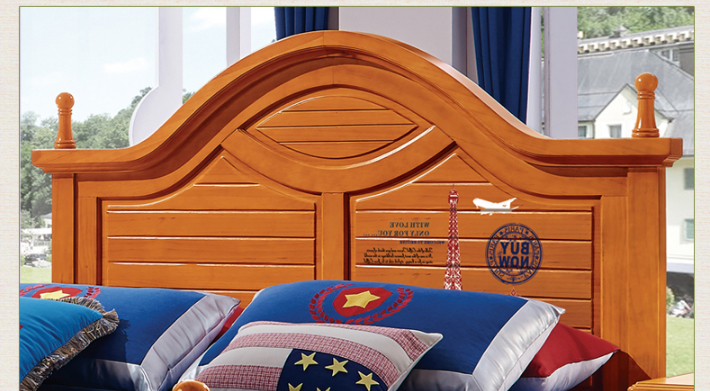 动漫居美式风格儿童床 全实木1.2米1.5米高箱储物儿童床A2601
