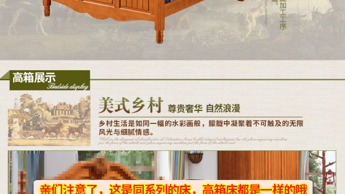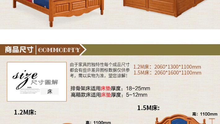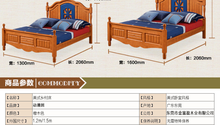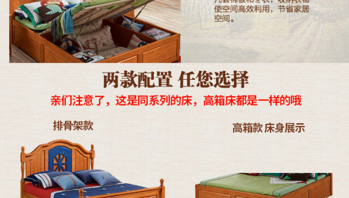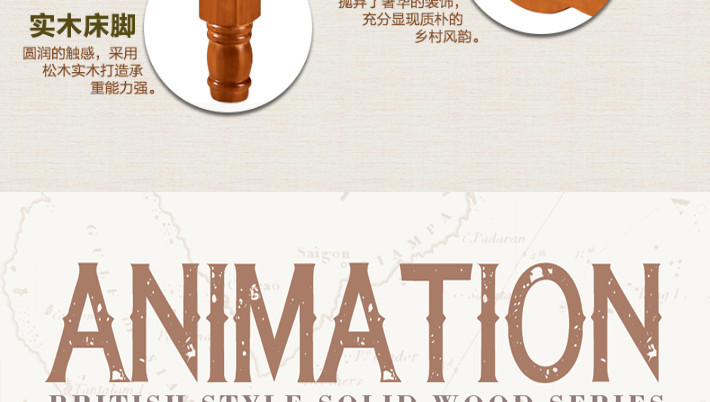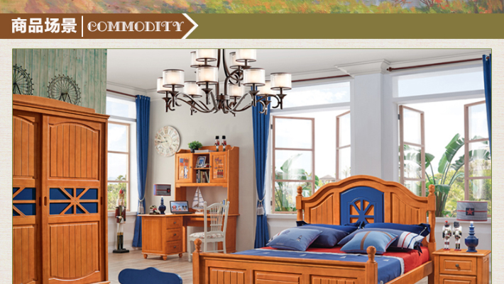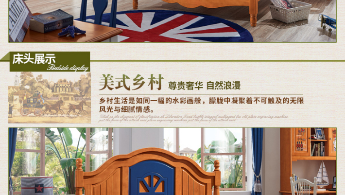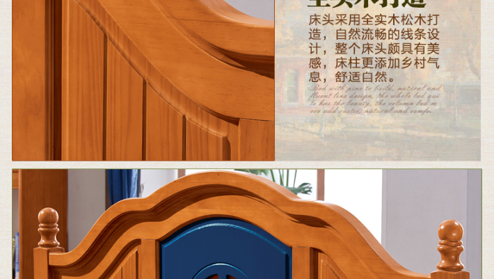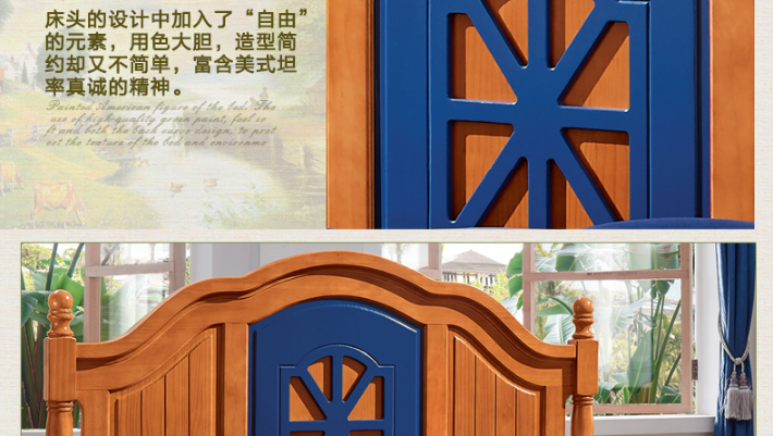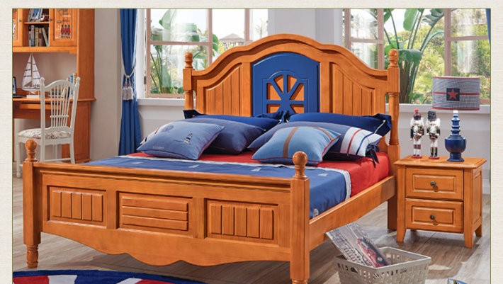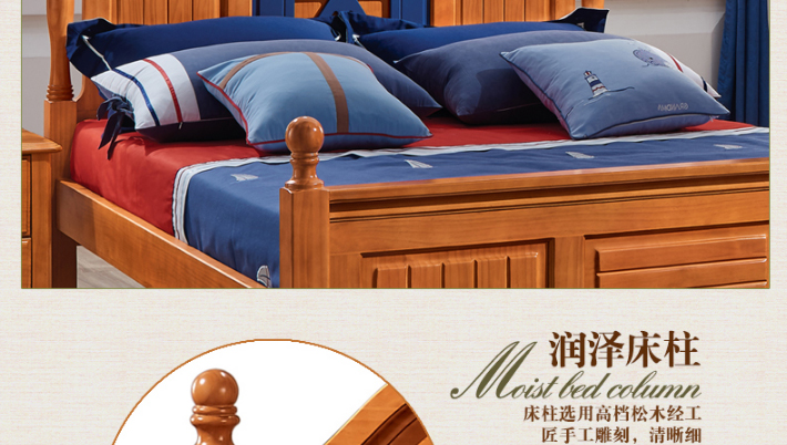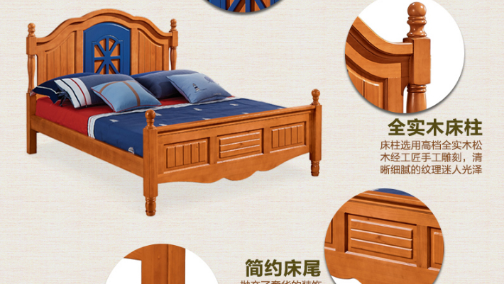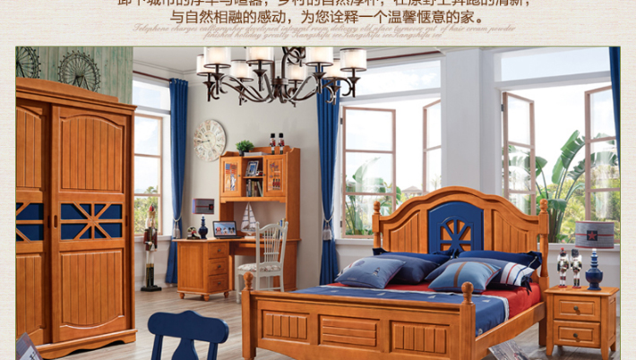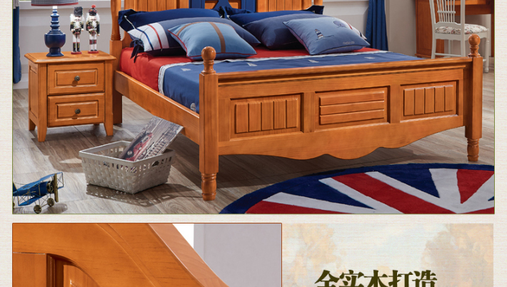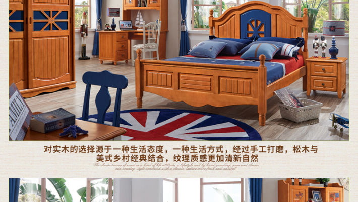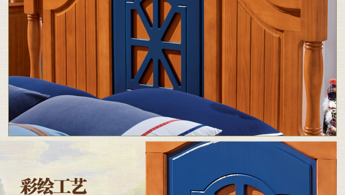 动漫居美式乡村系列儿童床 全实木男孩女孩儿童床A2603