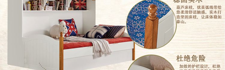 木料的厚度也和描述的一样,小孩子睡很结实,还有抽屉、书架,非常舒服,也非常牢固。