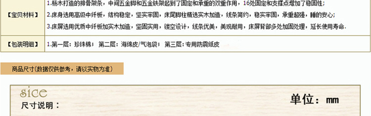 配件齐全,材料结实,整体大气,做工精细,打磨也光滑,还有送的床垫很好,总之是一次很满意的购物。