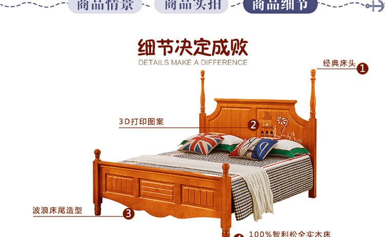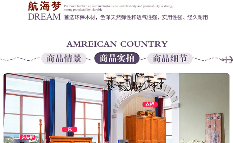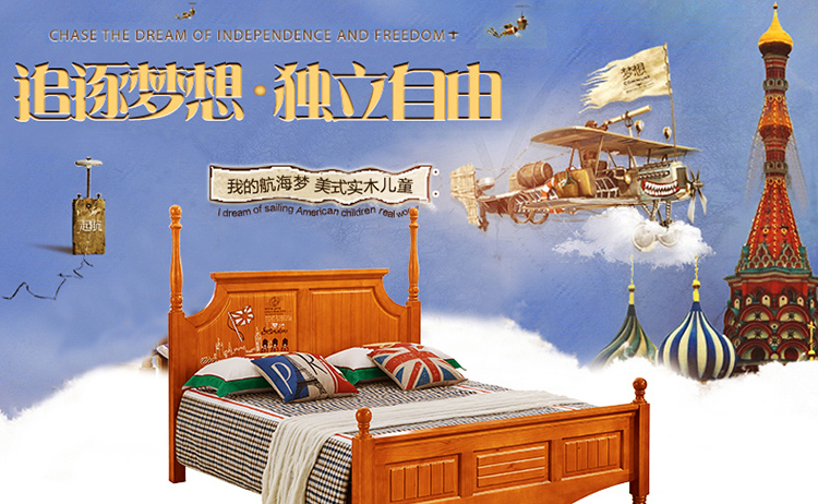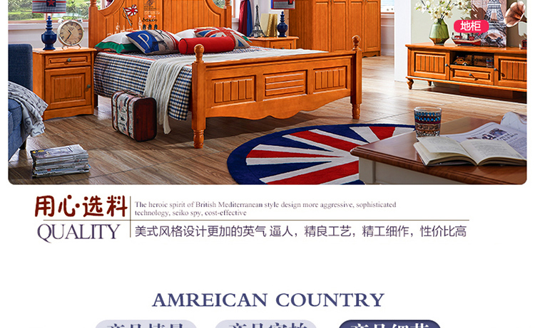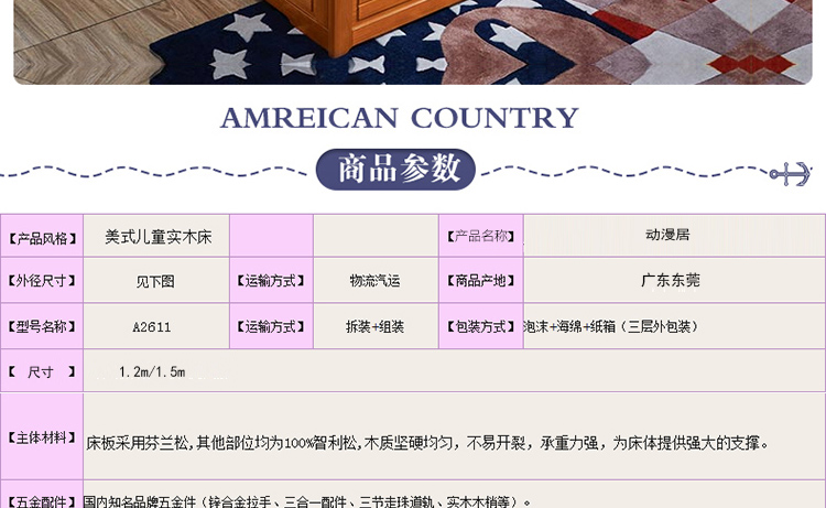 动漫居美式乡村系列儿童床 全实木高箱储物儿童床A2611