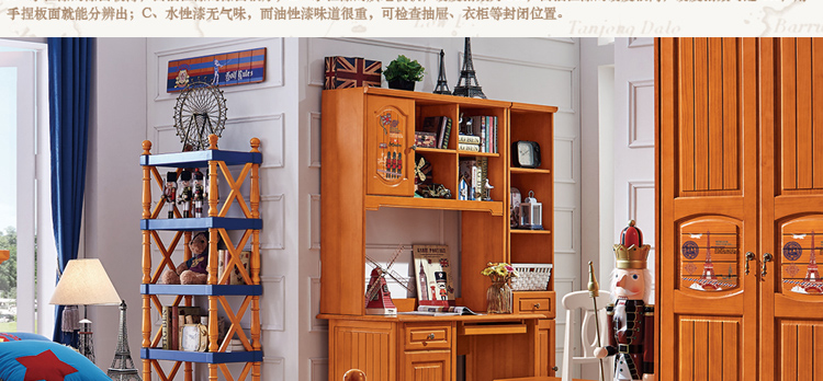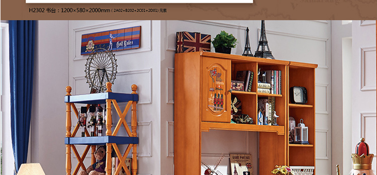 动漫居美式乡村系列儿童书柜 全实木框架书柜 书架 书台