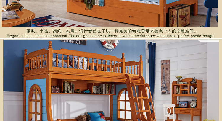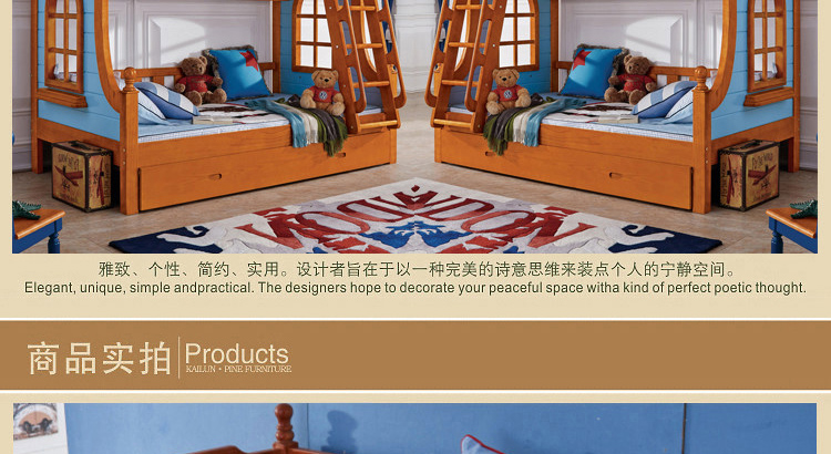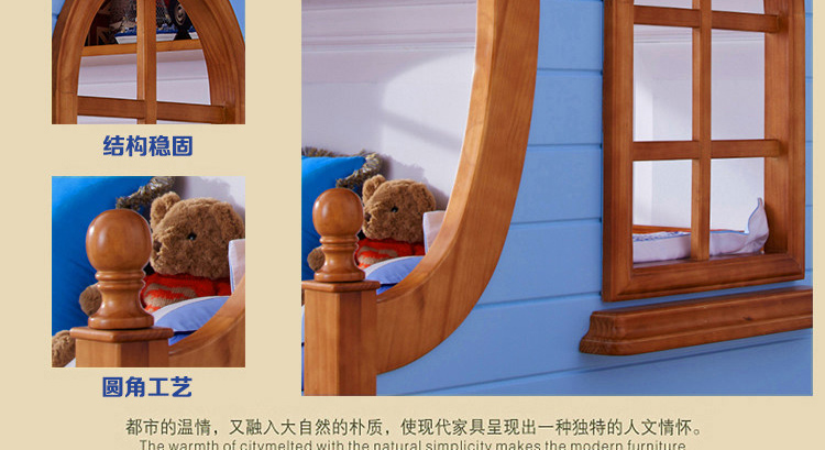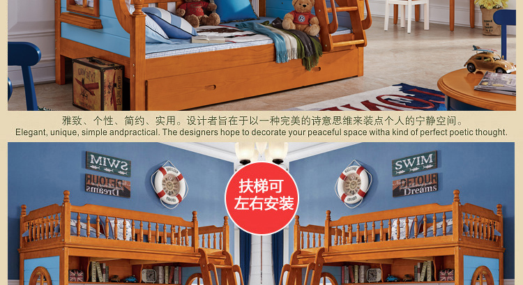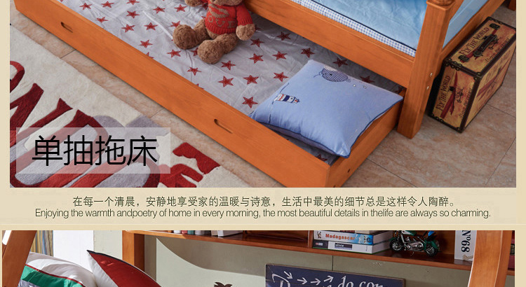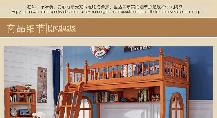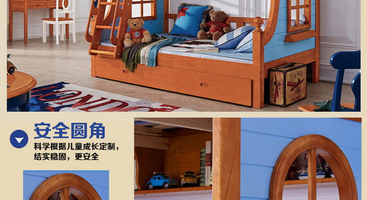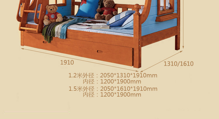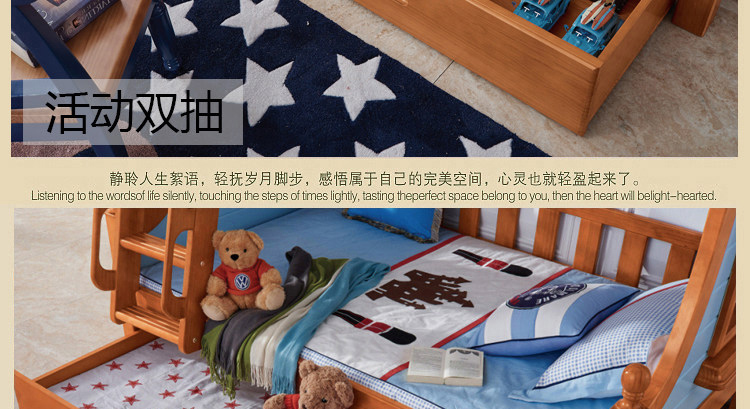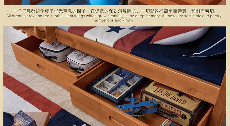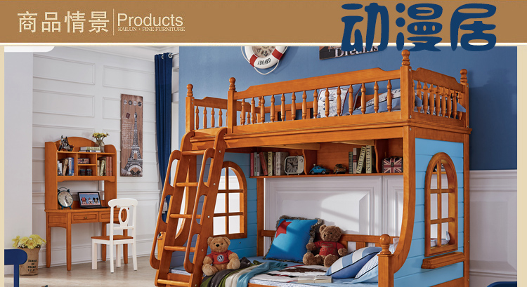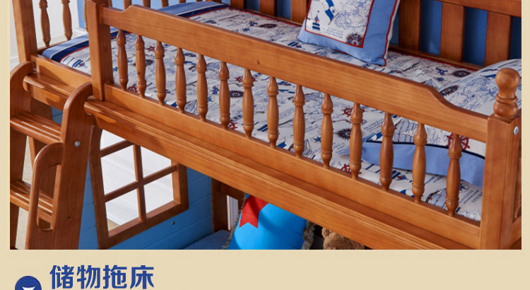 动漫居美式乡村系列双层儿童床 实木高箱储物儿童床K2202