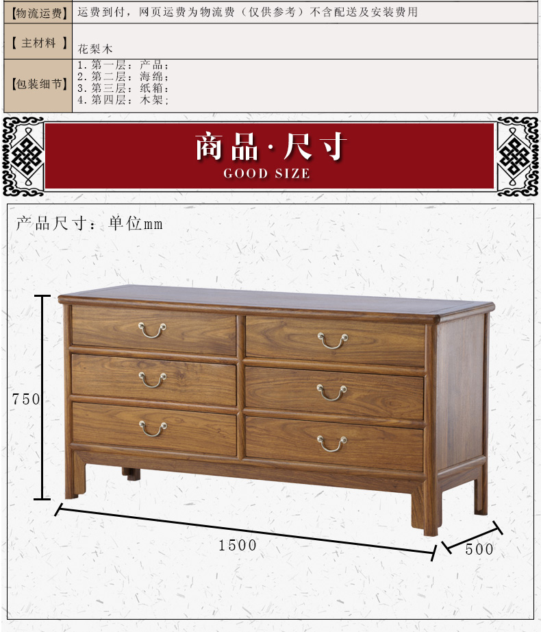 空禅花梨木木六屉柜实木结合六屉柜实用中式实木花梨木家具GX-065