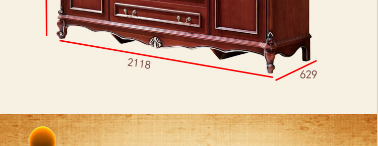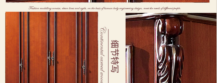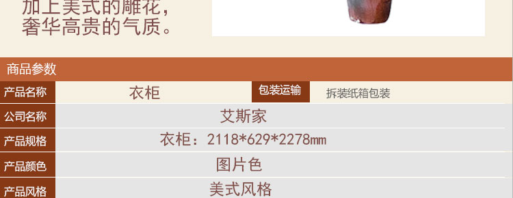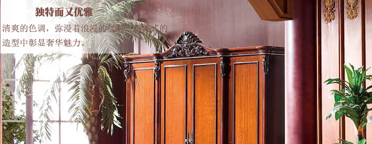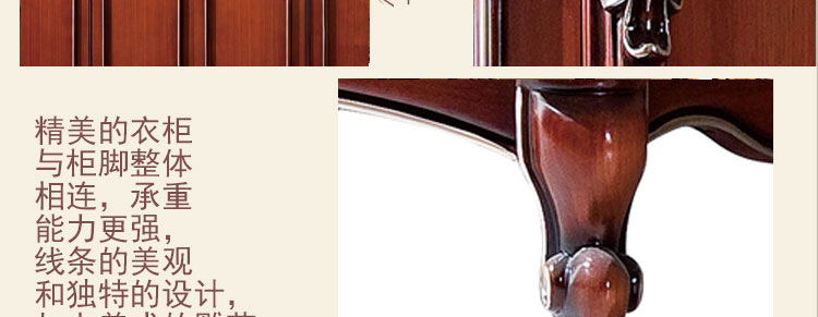 艾斯家玫瑰金四门衣柜深色衣橱衣柜 新古典四门 美式实木 卧室储物柜8501