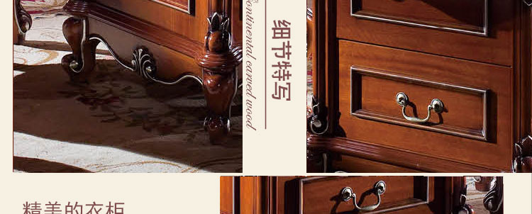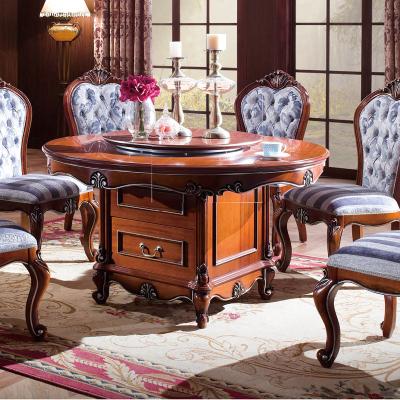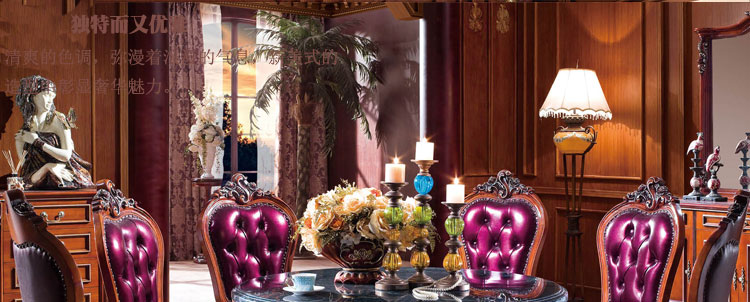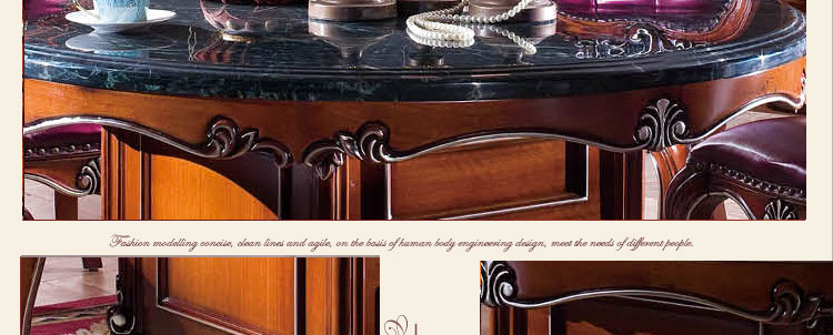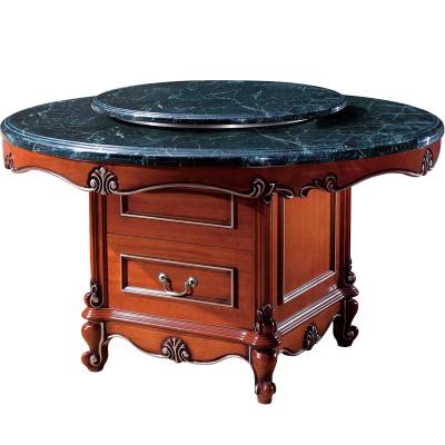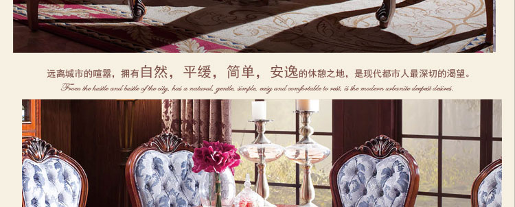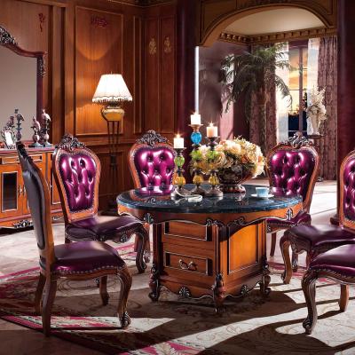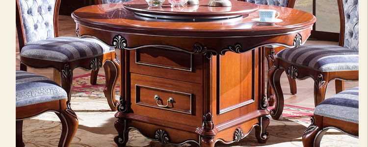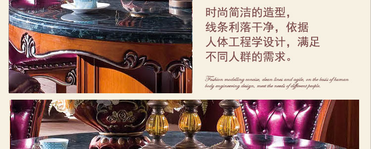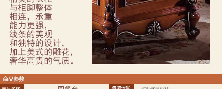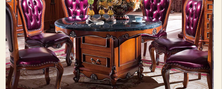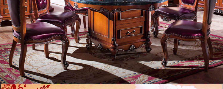 艾斯家美式玫瑰金乡村大理石圆餐桌 美式田园餐台椅组合全实木雕花圆桌餐桌8505