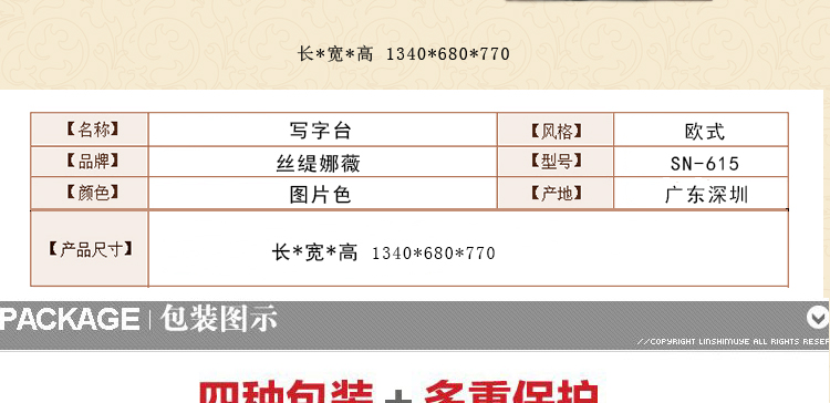 丝缇娜薇 欧式新款写字台实木写字台写字桌百搭款SN-615