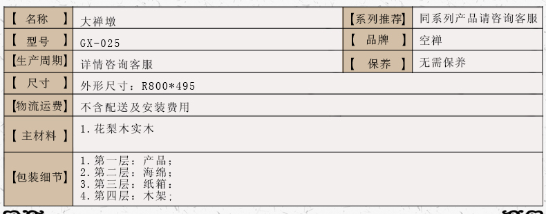 传统榫卯结构,预防开裂,结实耐用!采用花梨木手工制作,木质淳厚,放在家中,赏心悦目,格外雅致。设计新颖,个性美观。传统榫卯结构,牢固结实,不变形。品质保证。免漆做工精致,用料特别挑选,不上油漆,完全靠手工打磨,擦蜡,因为不上油漆,所以彻底杜绝了油漆的有害性,绝对健康环保。