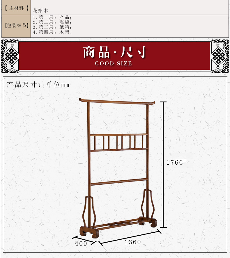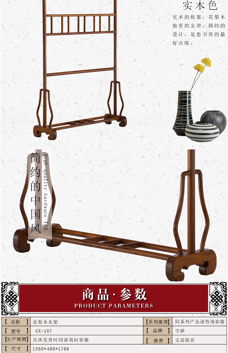 空禅花梨木明式红木小挂衣架中式古典落地实木方形衣帽架GX-107