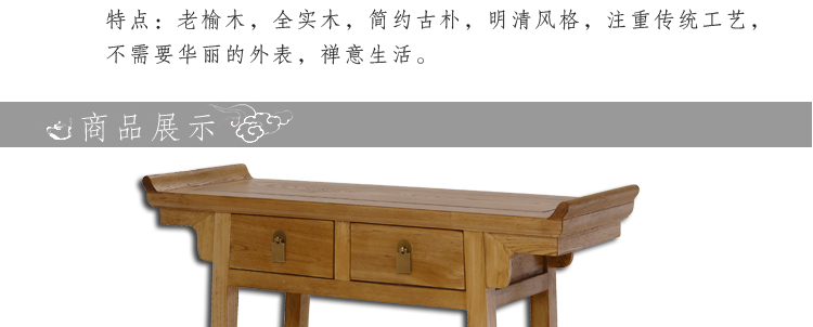 产品全部实木保证,家具榆木制作,榆木材料木纹清晰是做家具的好材料,实木家具健康环保。