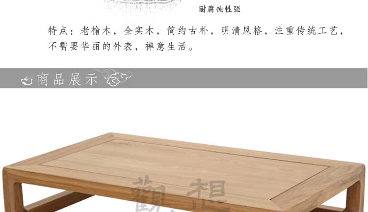 产品全部实木保证,家具榆木制作,榆木材料木纹清晰是做家具的好材料,实木家具健康环保。