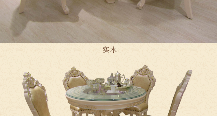 丝缇娜薇 欧式咖啡台餐桌实木餐桌椅组合饭桌玻璃台面咖啡台SN998