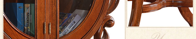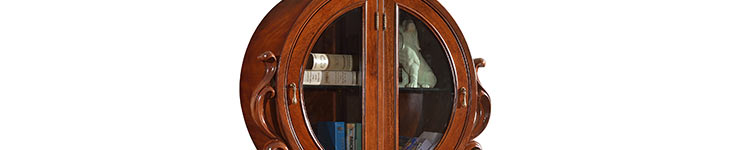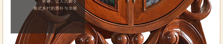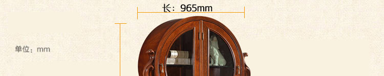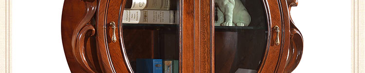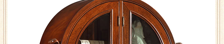 摩卡风情 美式实木鼓形酒柜美式玻璃展示柜复古家用装饰高柜子客厅小储物柜