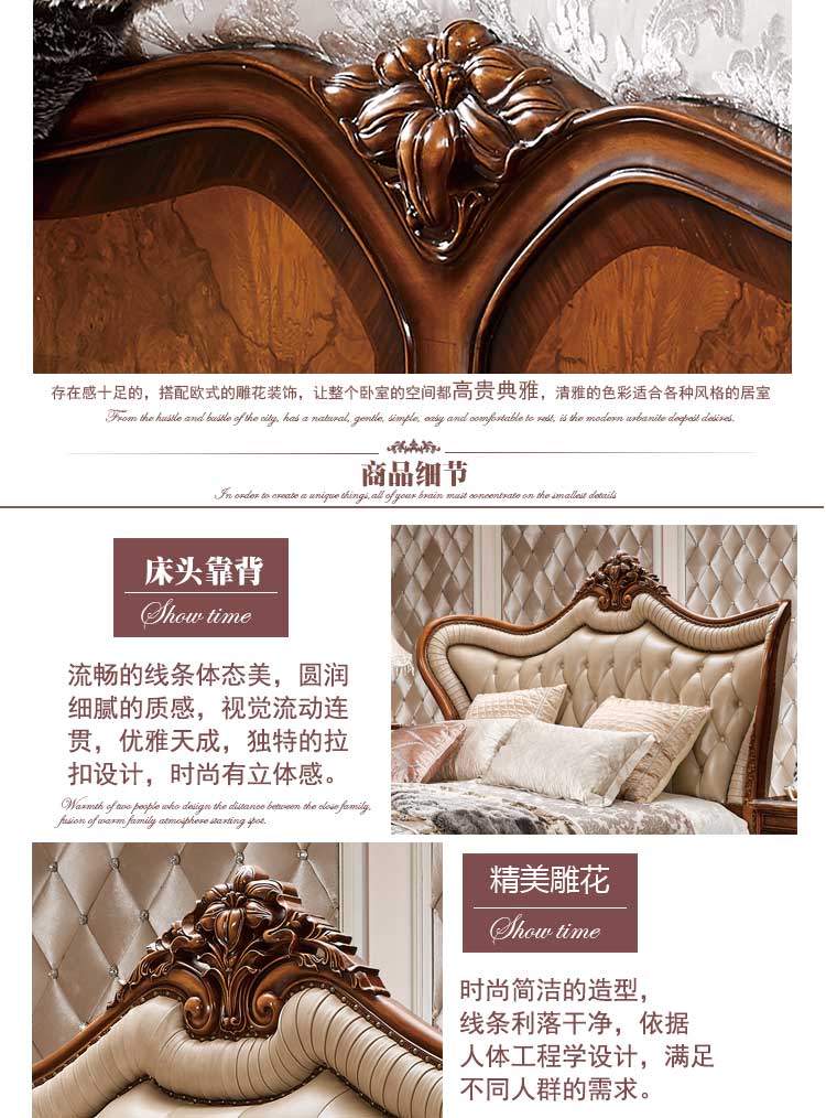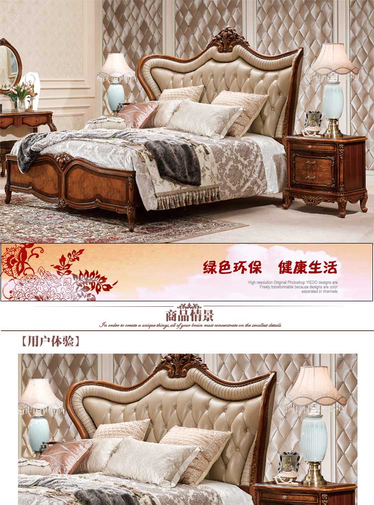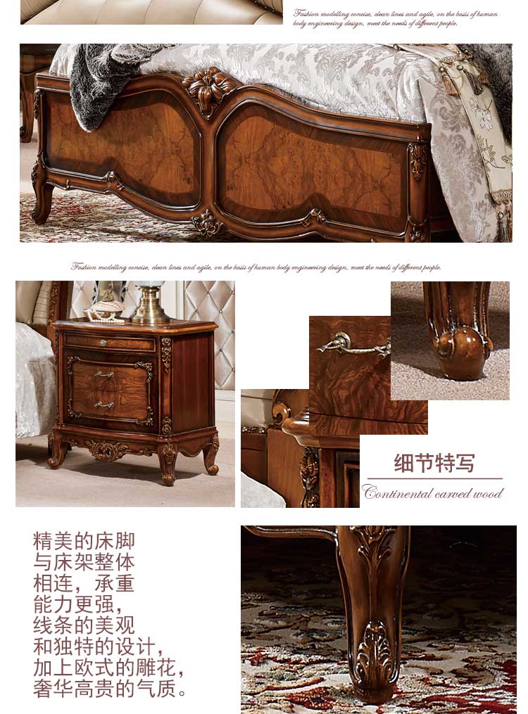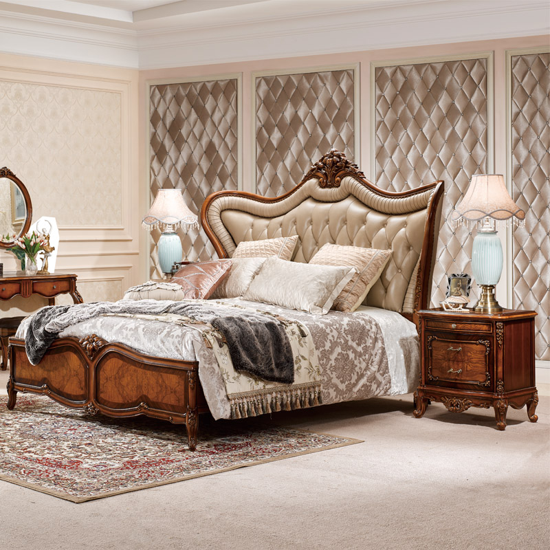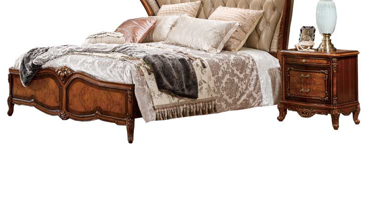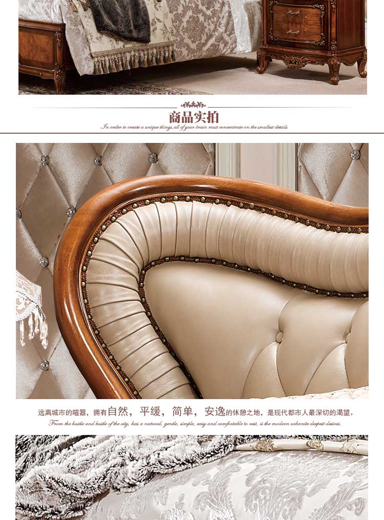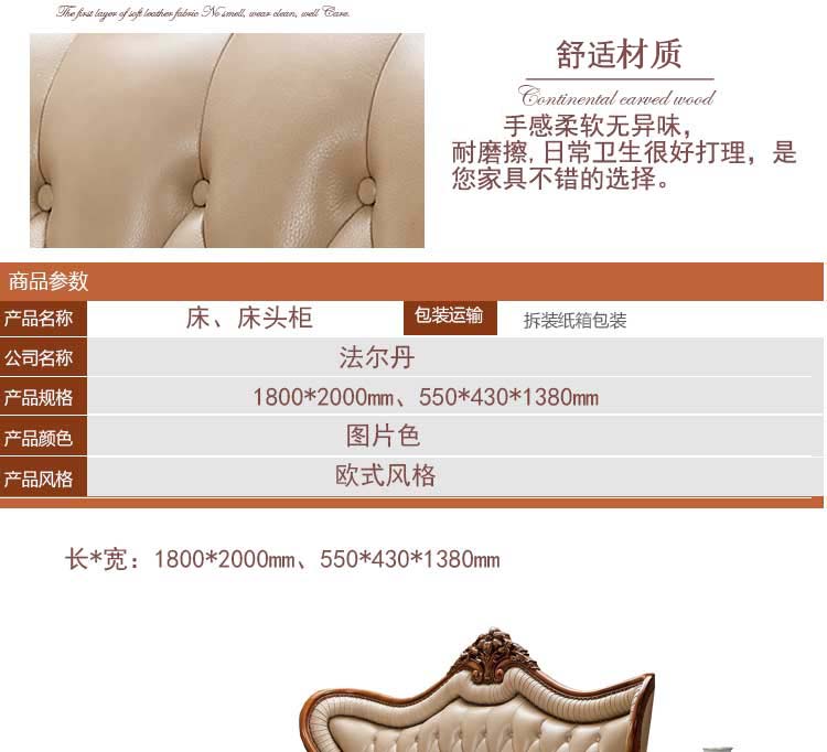 法尔丹A86 欧式床实木雕花床古典欧式双人床卧室皮艺公主床 床头柜