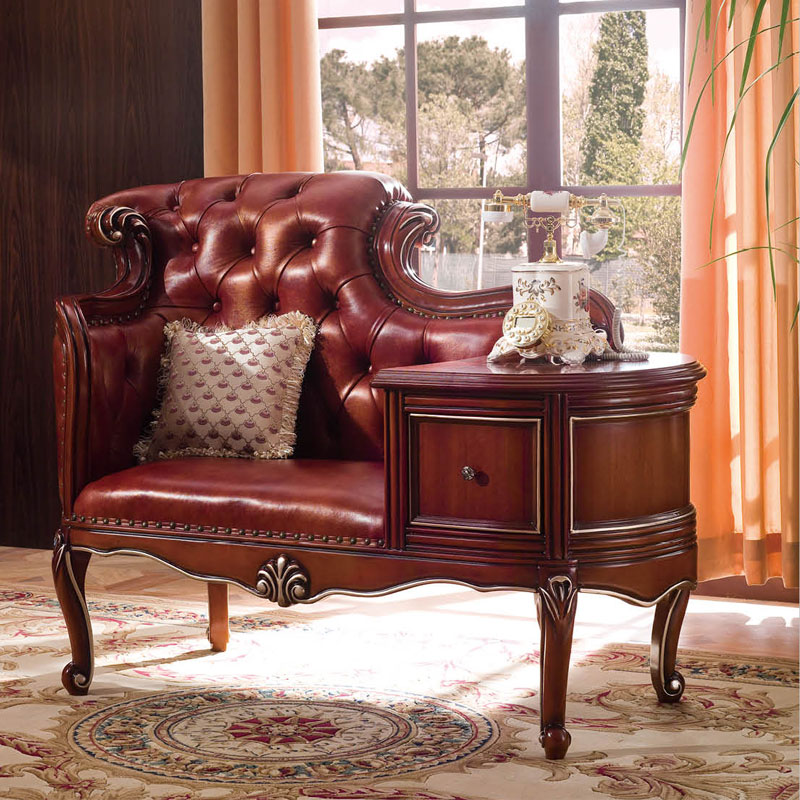 美式玫瑰金实木雕花 电话椅 美式休闲椅子8501